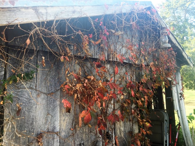 All this is reality and yet I’m enchanted by the beauty of this little deteriorating historic structure in our backyard. It serves as trellis to vines of colored leaves in the fall and supports pink peonies likely planted about the time of its construction every spring. In the winter it shelters stacks of wood that Hule splits in just the right size for our wood stove and in the summer it holds our mowers, garden tools, and a bird nest or two.